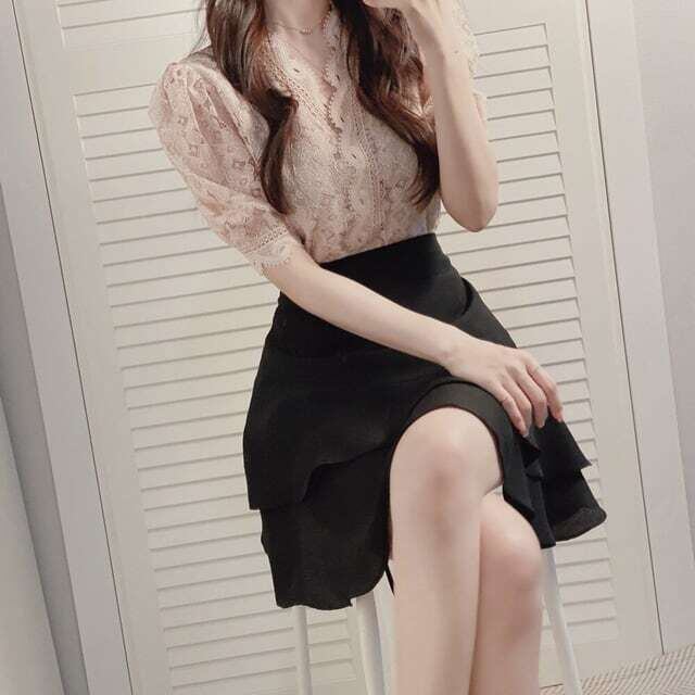 レースブラウス パフスリーブ 半袖 フェミニン E411