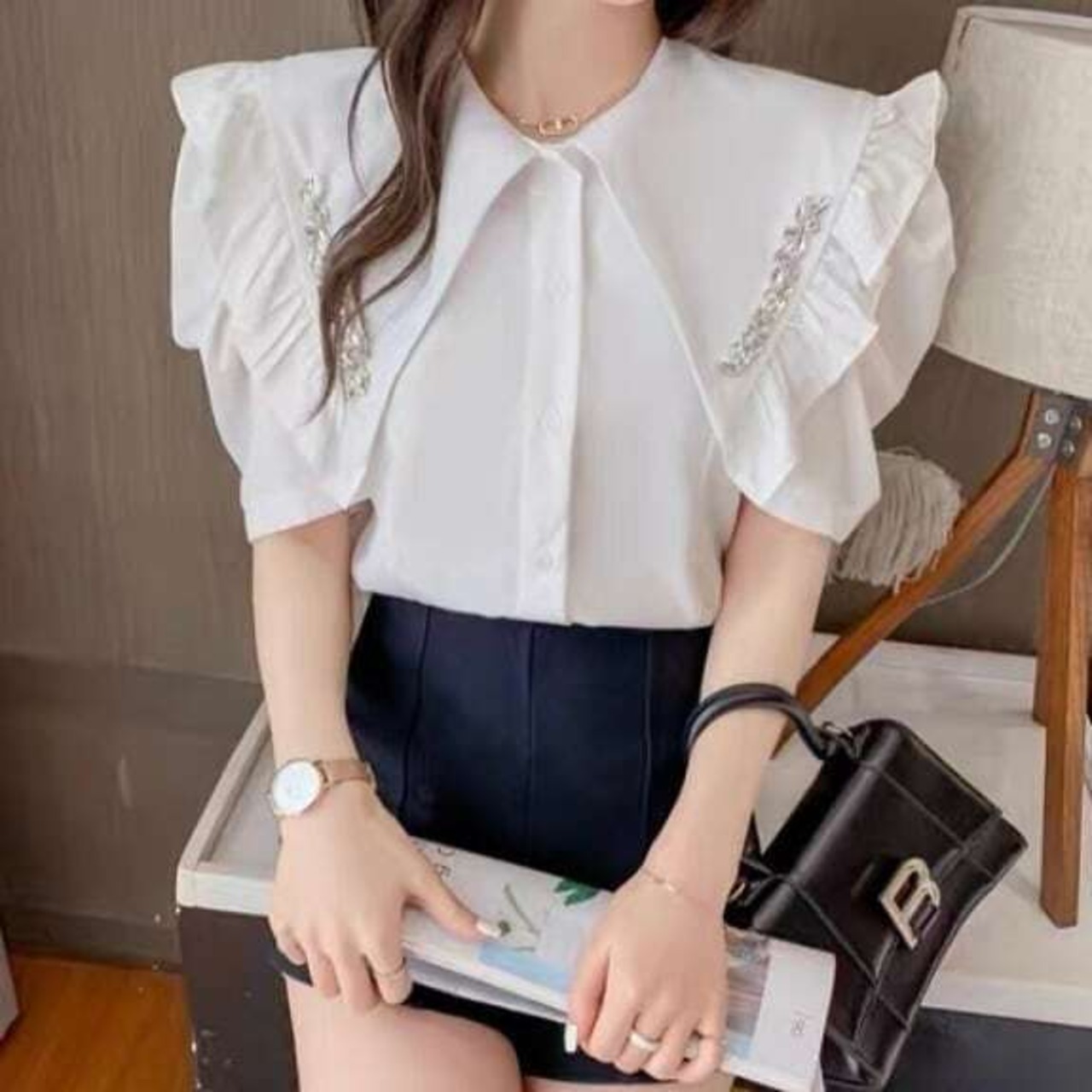 ビッグカラーブラウス ビジューブラウス フリル エレガント E389