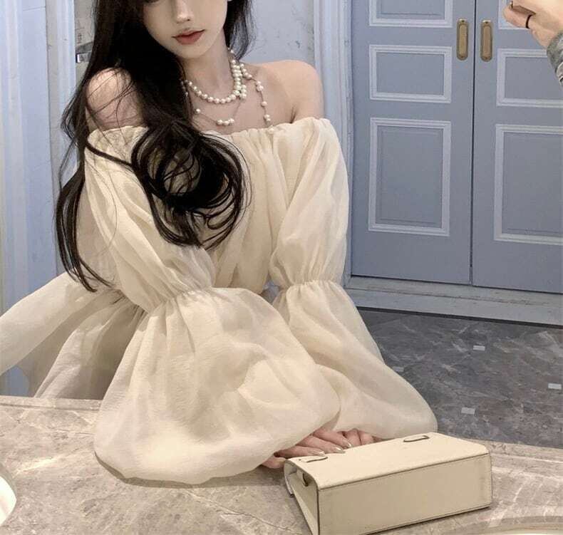 ボリュームトップス オフショル ペプラム シフォンブラウス フェミニン デート E233