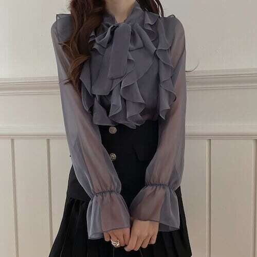 シフォンブラウス リボンブラウス フリル オフィスカジュアル フェミニン デート E208