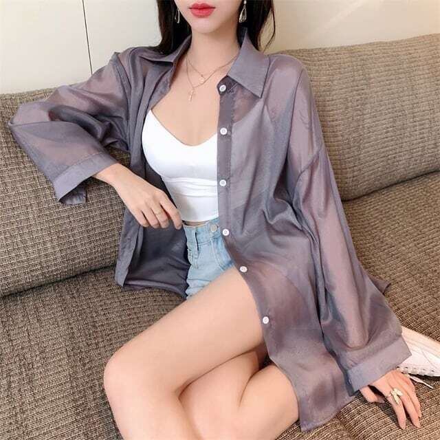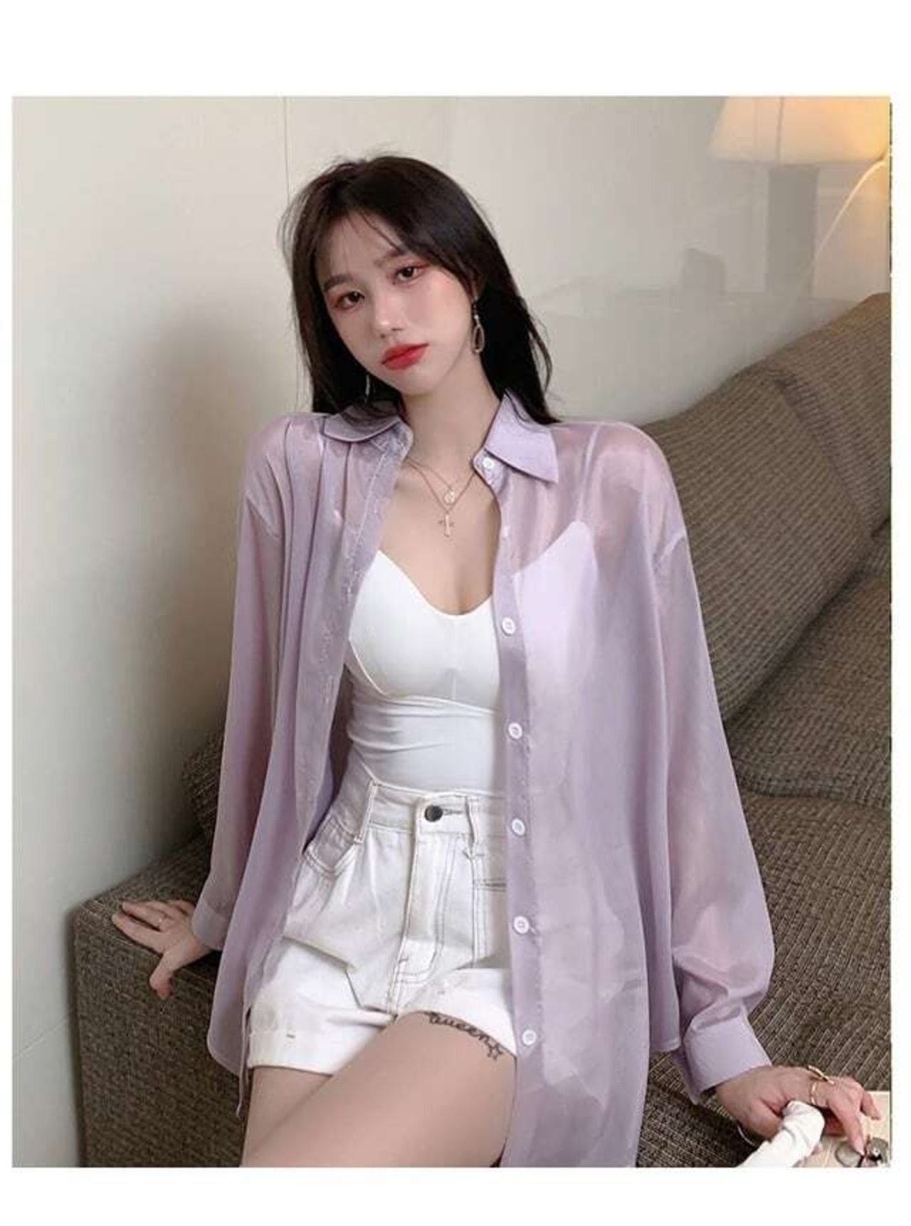シフォンシャツ シアーシャツ シースルー バックリボン カジュアル E190