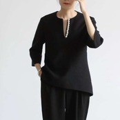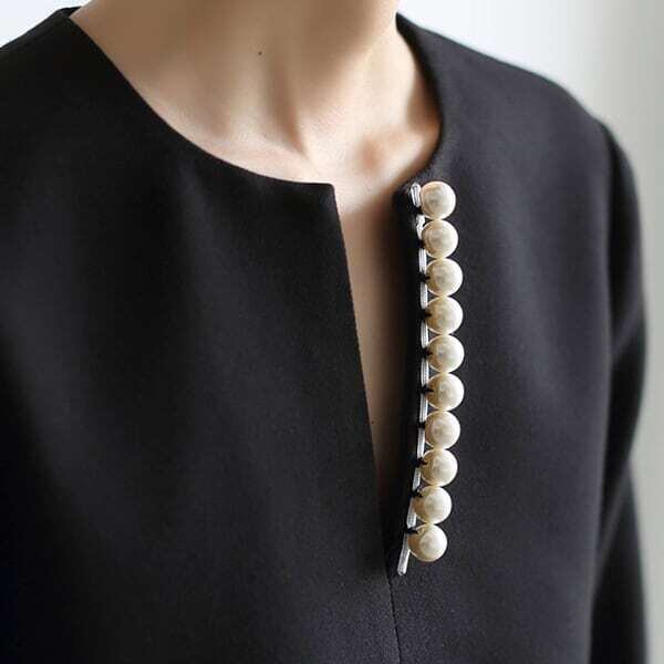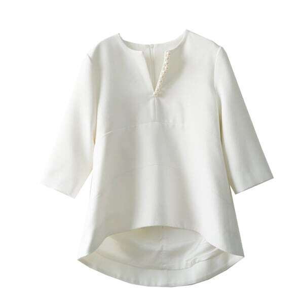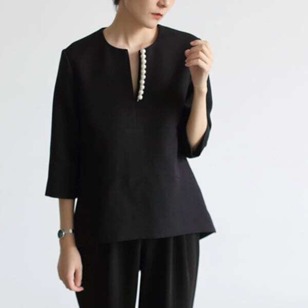 パールモチーフトップス Vネックトップス エレガント オフィスカジュアル お呼ばれ E176