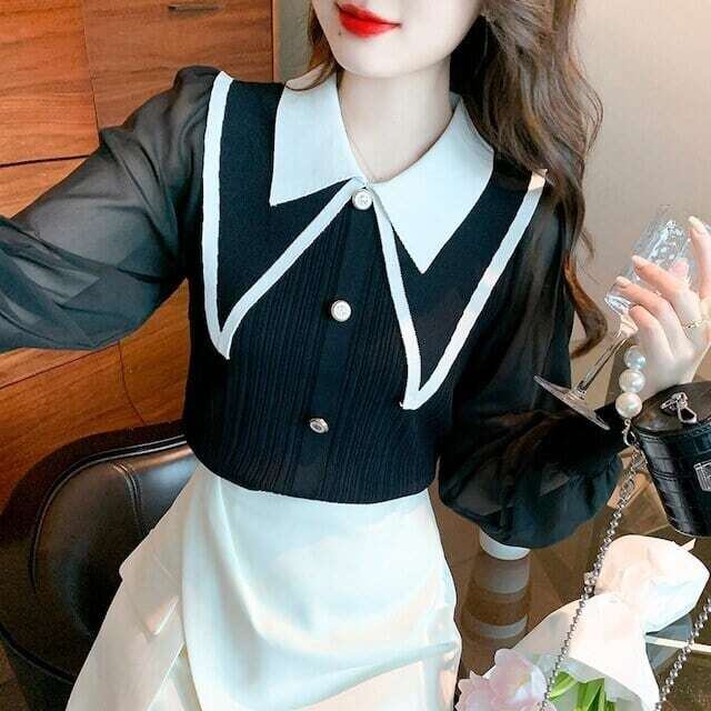 シフォンブラウス ビックカラーブラウス シャツ エレガント ガーリー E168