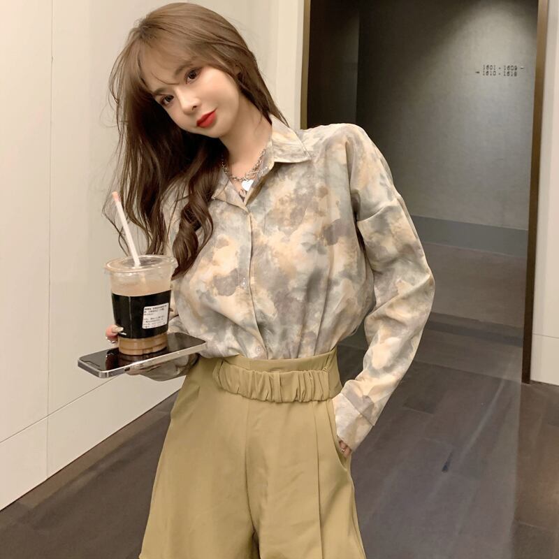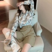花柄シャツ ブラウス 油絵風シャツ ガーリー レトロ E450
