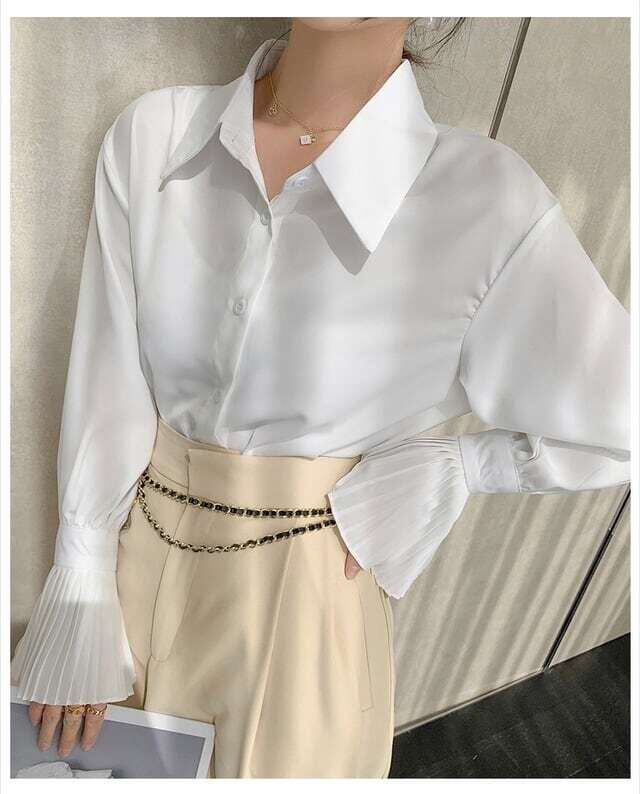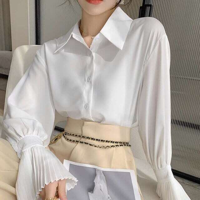 デザインシャツ 袖プリーツシャツ ブラウス オフィスカジュアル 清楚 E166
