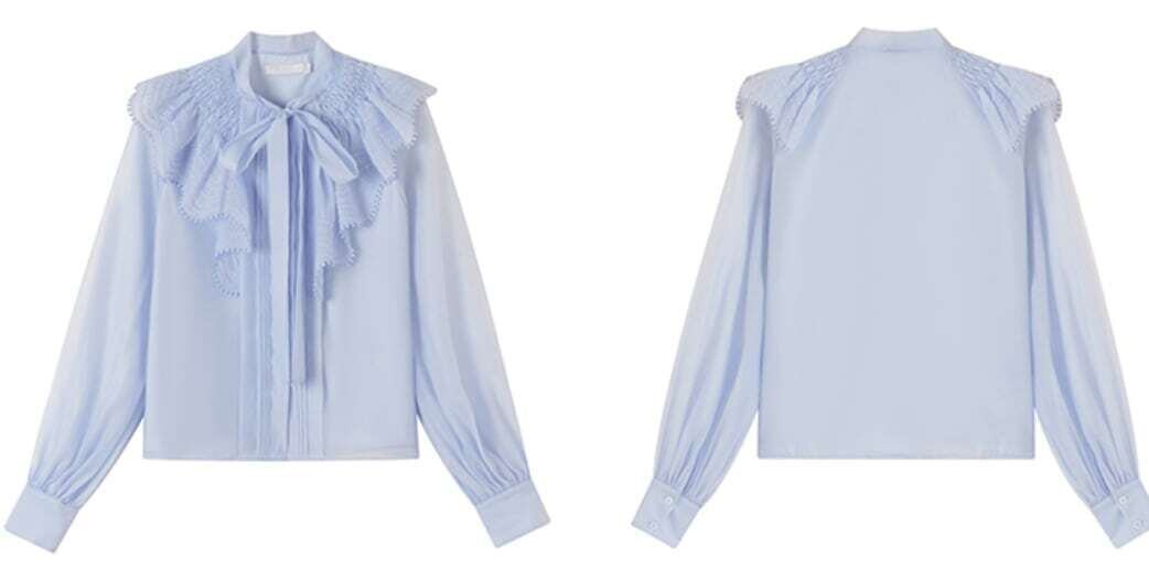 シフォンブラウス レーストップス フリル リボン フェミニン E511