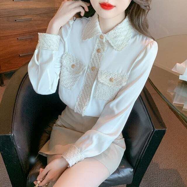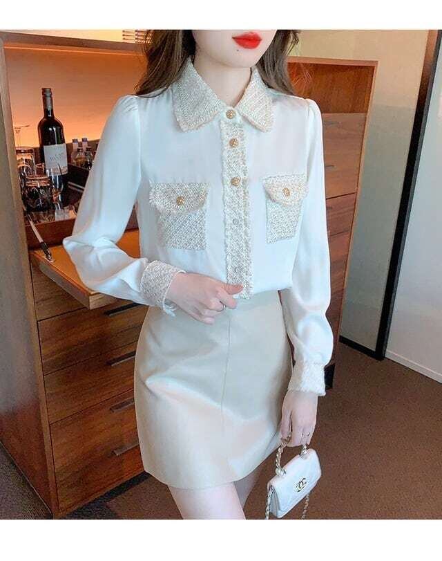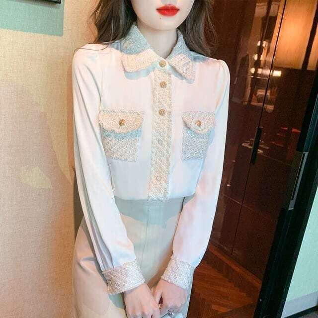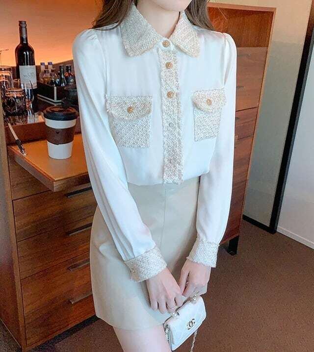 ツイードデザインブラウス 長袖 きれいめ お呼ばれ オフィスカジュアル E533