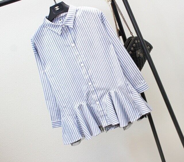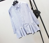 ストライプシャツ ストライプトップス ペプラム ガーリー E098